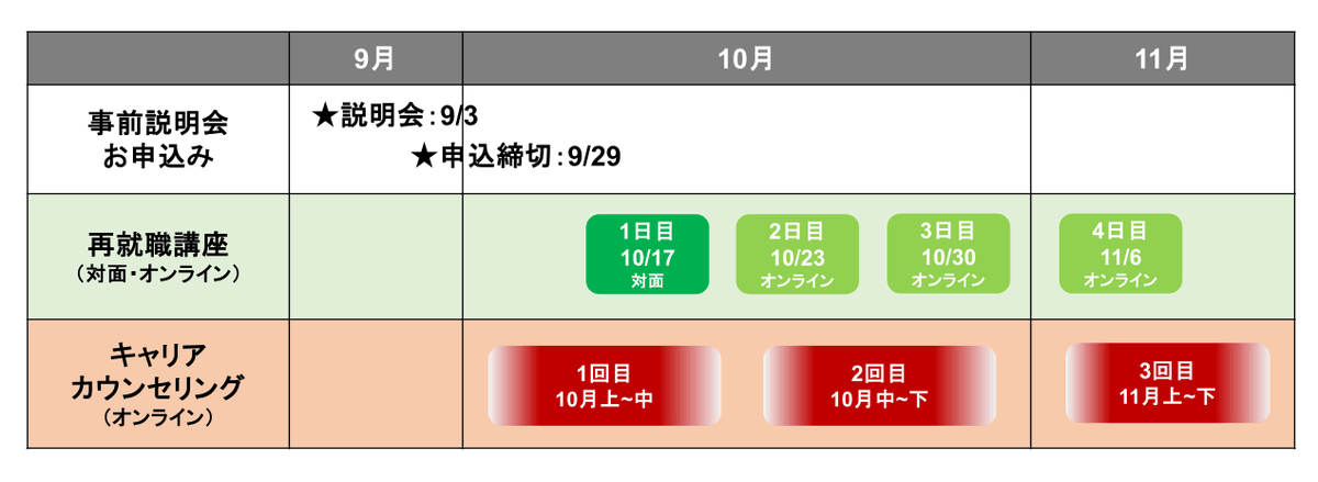 再就職に向けた実践講座 2日目(オンライン):10月23日(木)09:30~12:35